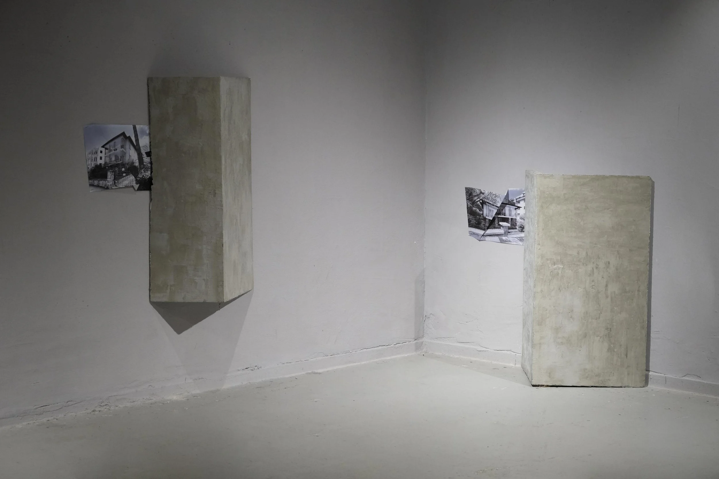 İstila, beton sıvalı duvar kesitleri ve A3 siyah beyaz dijital baskı, yerleştirme, 2025.