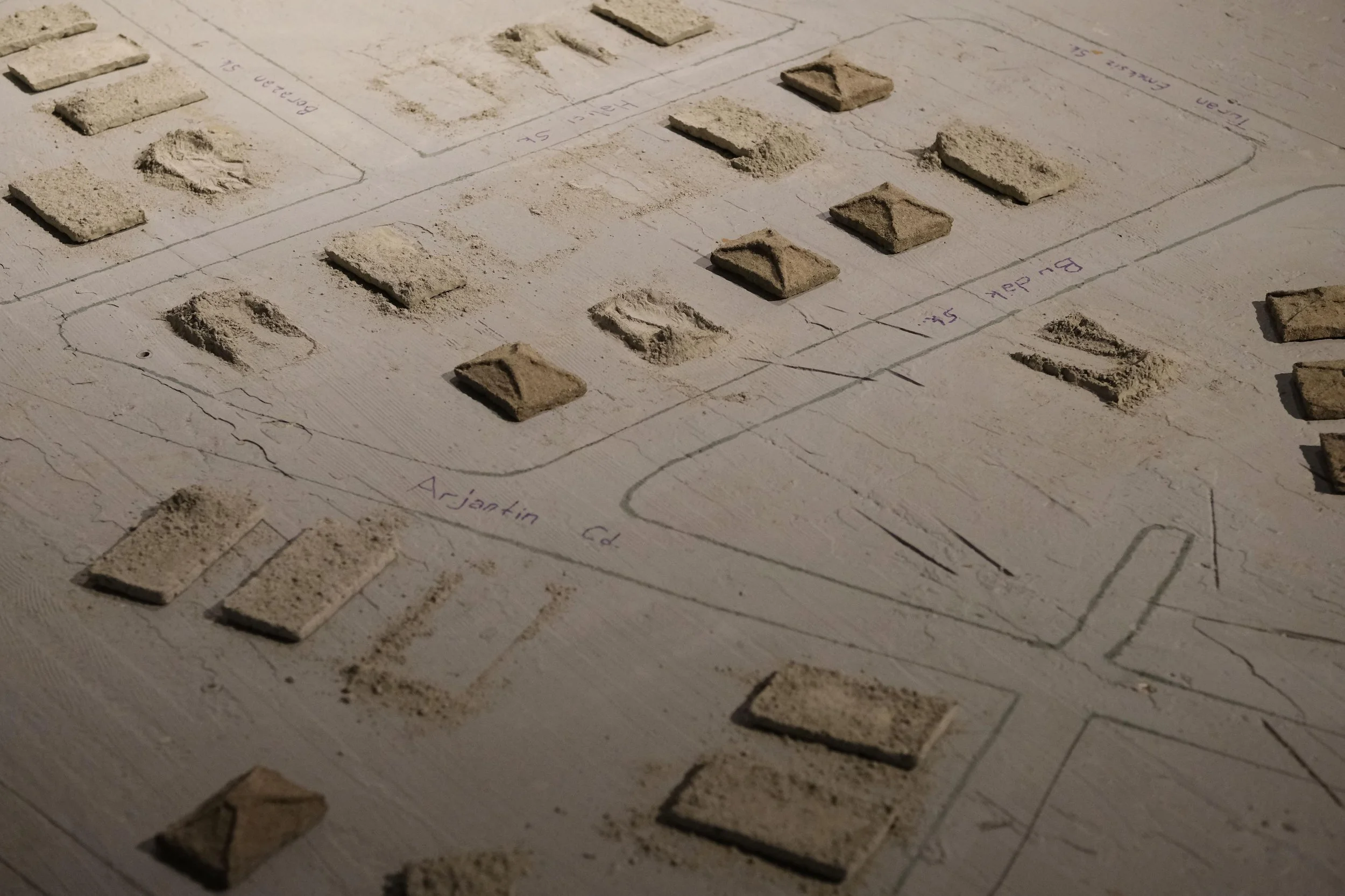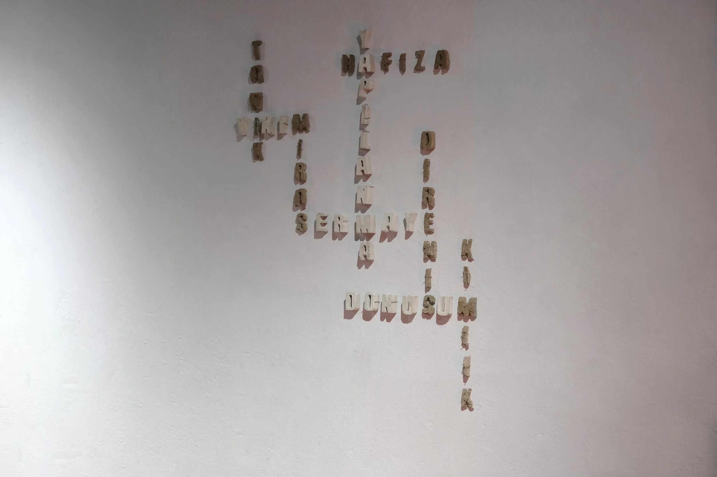 Rant Oyunu, Beton ve topraktan döküm harfler, yerleştirme, 2025.