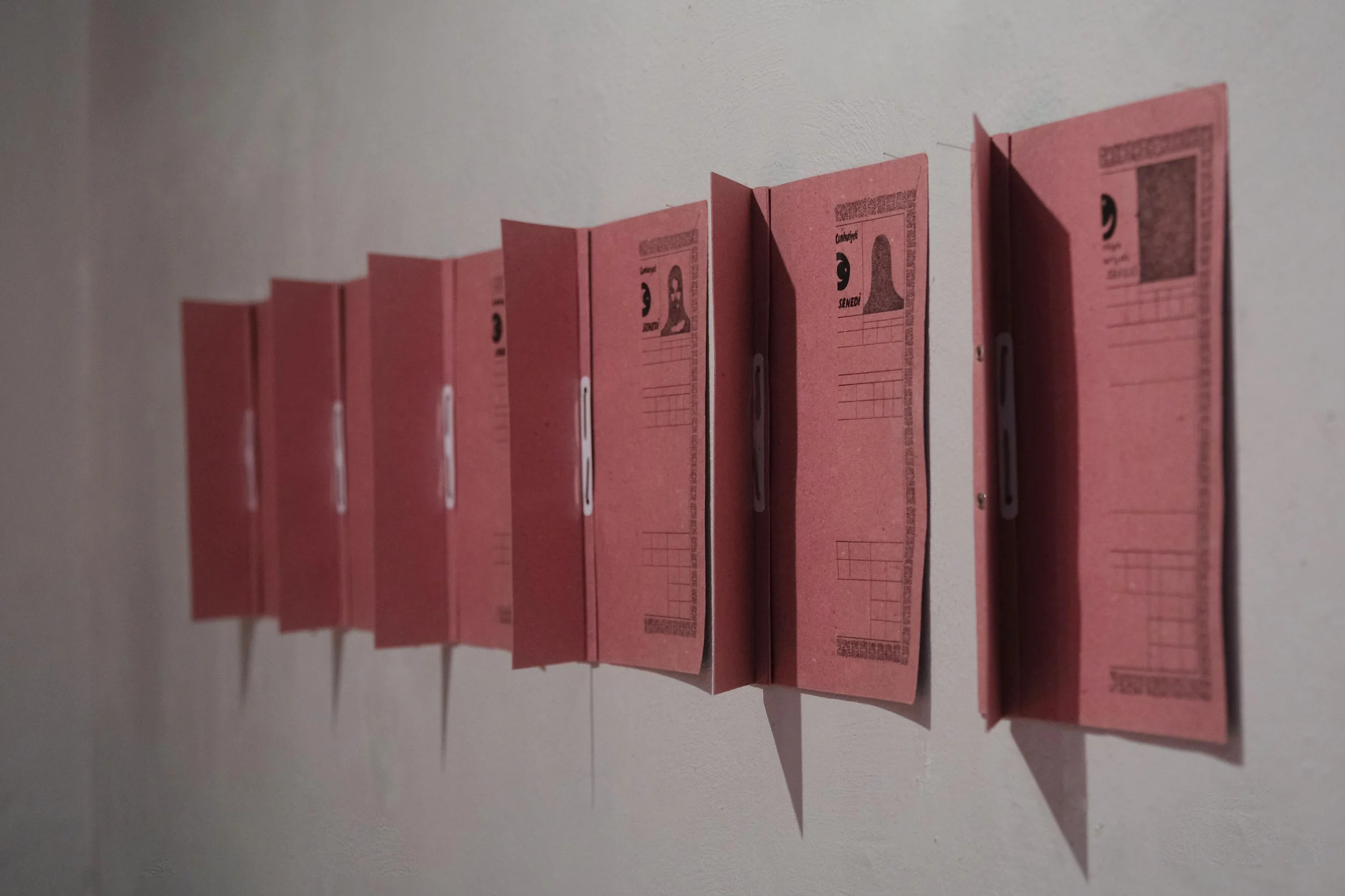 Mülkiyet Hakkı, Pembe evrak dosyaları üzerine rapido kalem ile çizim, 2023.