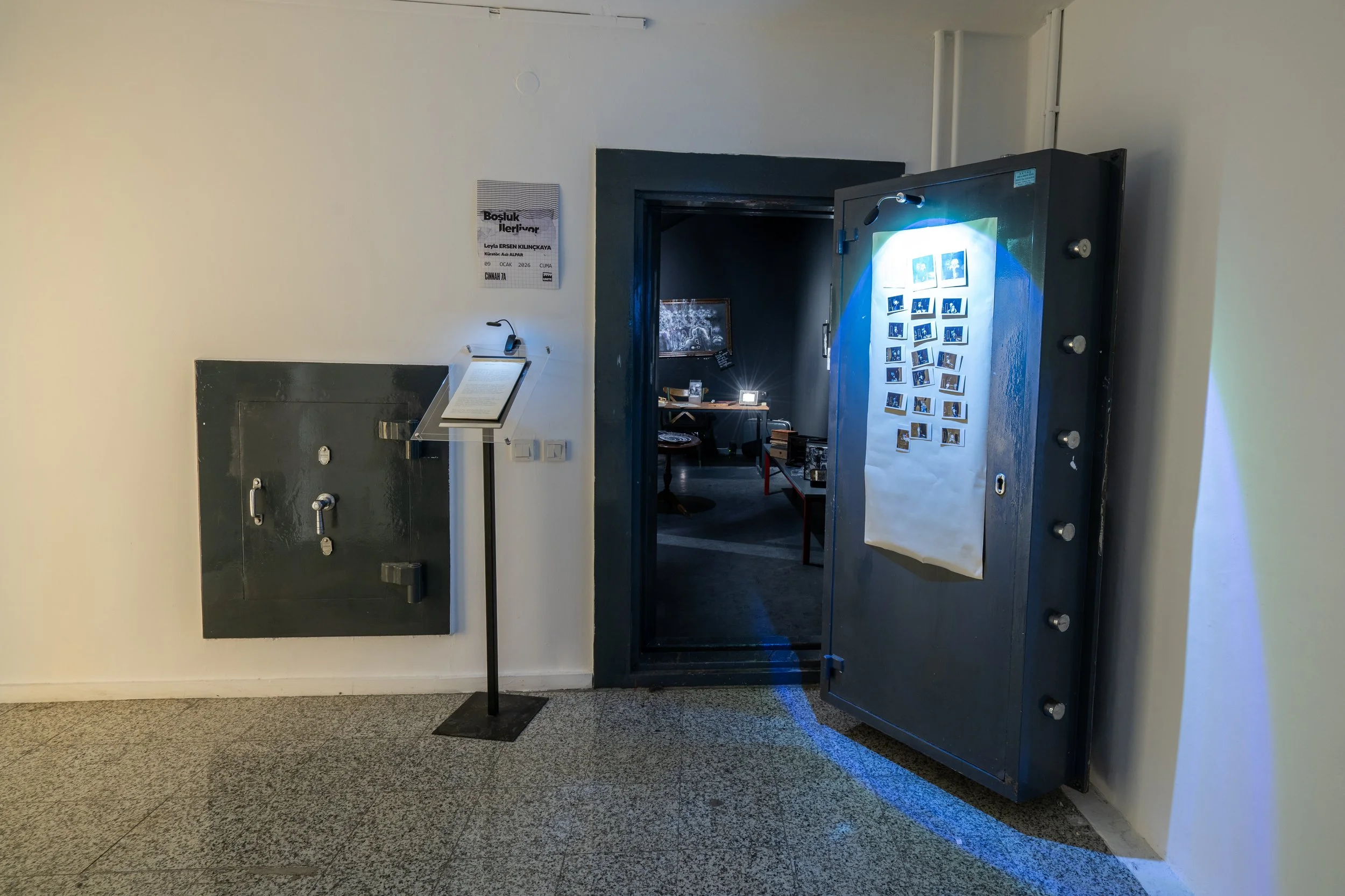 Leyla ERSEN KILINÇKAYA’nın mekânsal yerleştirme ve katılımcı performans alanı olarak tasarladığı sergi, günümüz dünyasının giderek distopik bir biçim almasıyla bireyin yaşadığı kaygı, baskı ve umutsuzluğun yarattığı zihinsel yorgunluk, yabancılaşma hissine odaklanır. Bu temayı, Türk Edebiyatı’nda en derinlikli işleyen metinlerden biri olan Oğuz ATAY’ın Korkuyu Beklerken öyküsüne atıfta bulunarak sergi mekânını zihnin kendini kapattığı bir daire/oda olarak tasarlamıştır. UNITE’ın bir zamanlar banka kasası olan sergileme alanı, izleyiciye fiziksel olarak da kapalı kalma olasılığını hissettirirken korunma ihtiyacı ve saklanmak, hafıza, overthinking, otosansür ve özyıkım gibi kavramlar üzerinde düşünmeye iten bir deneyim alanı sunar.