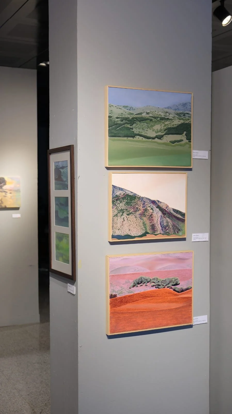 Bu sergi üzerine konuşacak olursam ilk etapta doğa oldu elbette. Peyzaj ve doğa üzerine yöneldiğim, ilk biçim, form ve renk arayışına çok girdiğim bir süreçti diyebilirim. Ben neyi nasıl yansıtıyorum, ne görüyorum? Beni en iyi yansıtan materyaller, formlar, biçimler, renkler neler? Bu elimdeki defteri de o yüzden getirdim. O dönemki bütün düşüncelerimi yazdığım bu defter o dönem tam olarak ne hissettiğini anlayabilmek için faydalı da oldu. Bir şekilde ufuk çizgisi görememekten çok şikâyet etmişim. Hep dikey formlar var artık hayatımızda, dikeylik daha çok gördüğümüz bir şey ve uzakları görmekte çok zorlandığımıza kafayı takmışım. Bu beton yığını ve dikey formlar arasında bir şekilde uzakları görme çabası, belki buna bir özlem duymak sanırım beni motive etti ve bu şekilde bir ifade buldum. Bu peyzaj resimleri de o yataylığı koruyor mesela. O dönemki yaşadıkların, çevresel koşulların, insanın asıl üretiminde çok yön gösterici olduğunu ve bir rehberlik niteliğinde olabildiğini, ilk defa bu üretimleri yaparken hissettim.