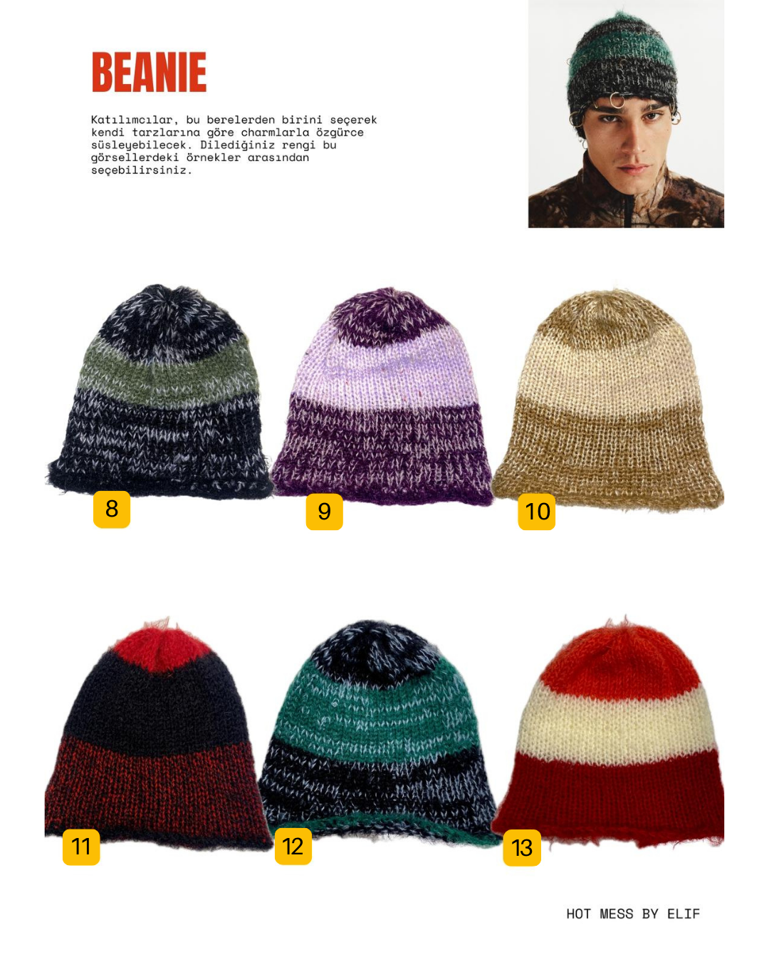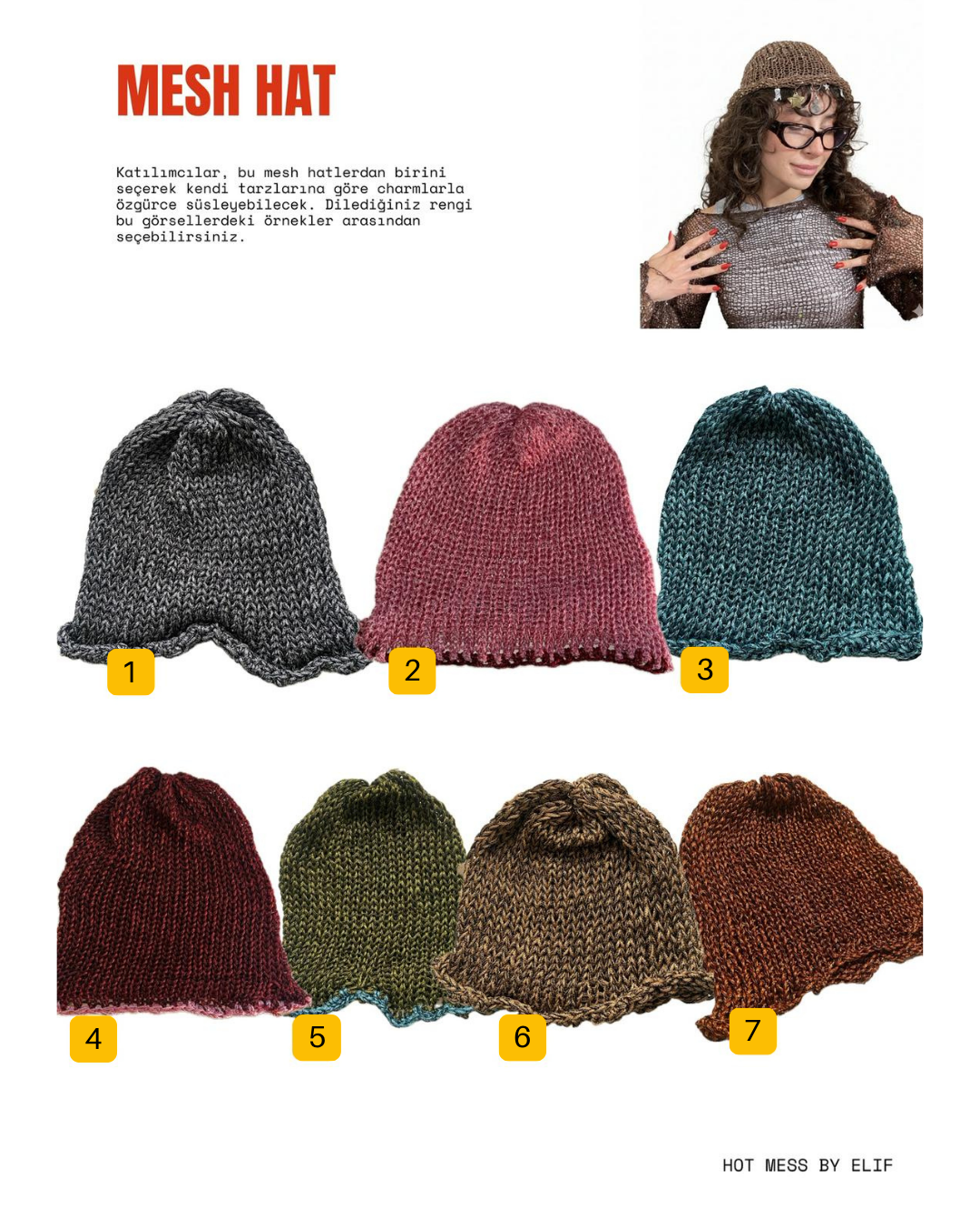 Atölyede herkes katalogtan dilediği farklı renk seçenekleriyle mesh hat, bere ya da balaklavayı seçiyor ✨🧢